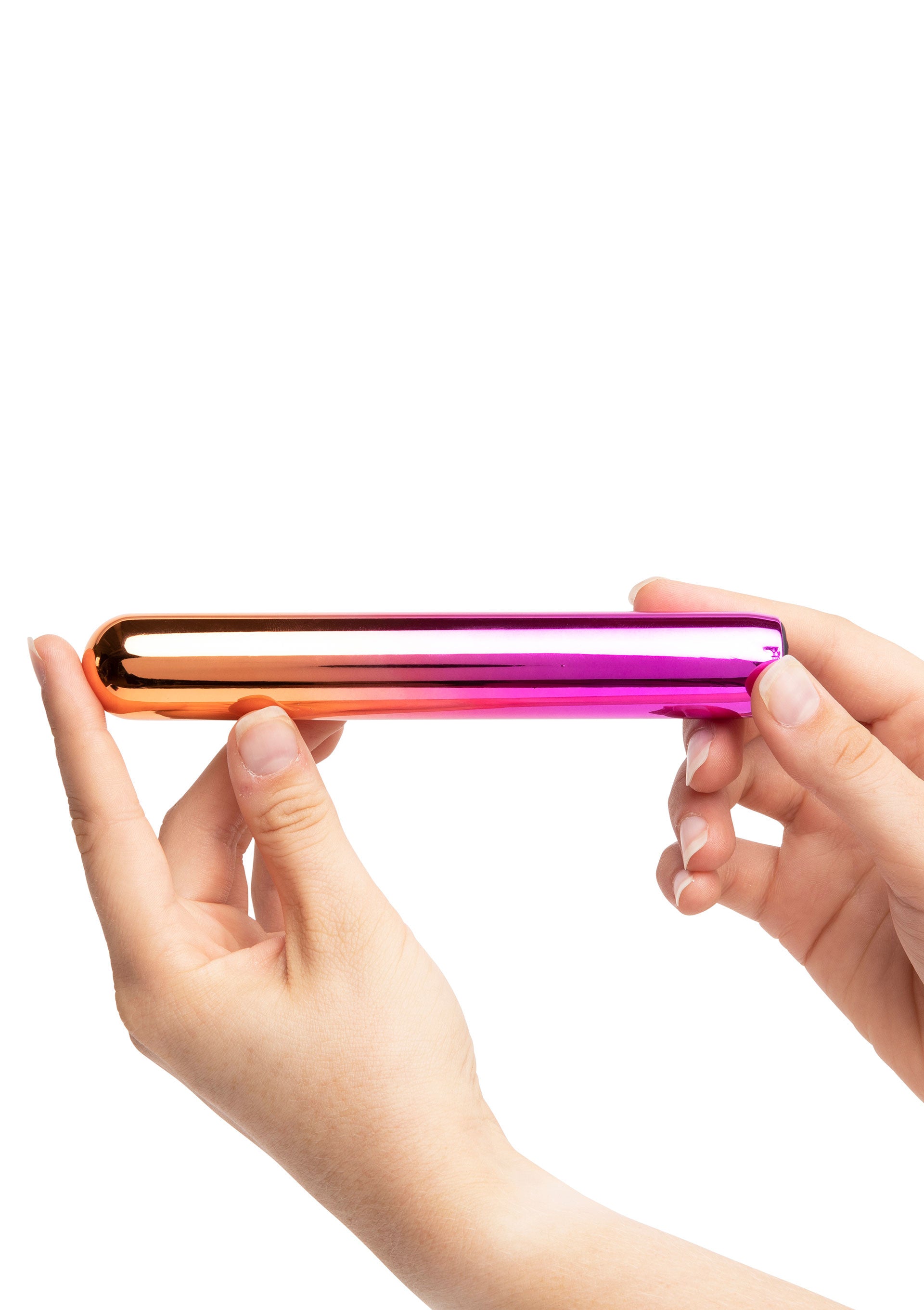 Sotto il design dell'Aluminium Rumba ci sono due motori sorprendentemente potenti per raddoppiare il piacere. Sebbene abbiamo progettato questa atmosfera a doppio motore pensando ai nostri veri utenti esperti, non ci siamo fermati qui. Per coloro che desiderano una nuova esperienza sensoriale e si godono un po' di giochi di temperatura, la delicata funzione di riscaldamento dell'alluminio soddisferà sicuramente le vostre esigenze. Se ti senti avventuroso e vuoi provare sia il calore che la vibrazione contemporaneamente, o preferisci sperimentare singolarmente entrambe le sensazioni, la scelta è tua! Le funzioni bullet possono essere gestite in modo indipendente, consentendoti di personalizzare la tua esperienza. La finitura arcobaleno ombre dell'alluminio e il motore proprietario 60SX AMP, che comanda 7 velocità di vibrazione e 5 modelli di vibrazione, significano che non dovrai mai più scegliere tra piacere e bellezza! Cosa si può volere di più?