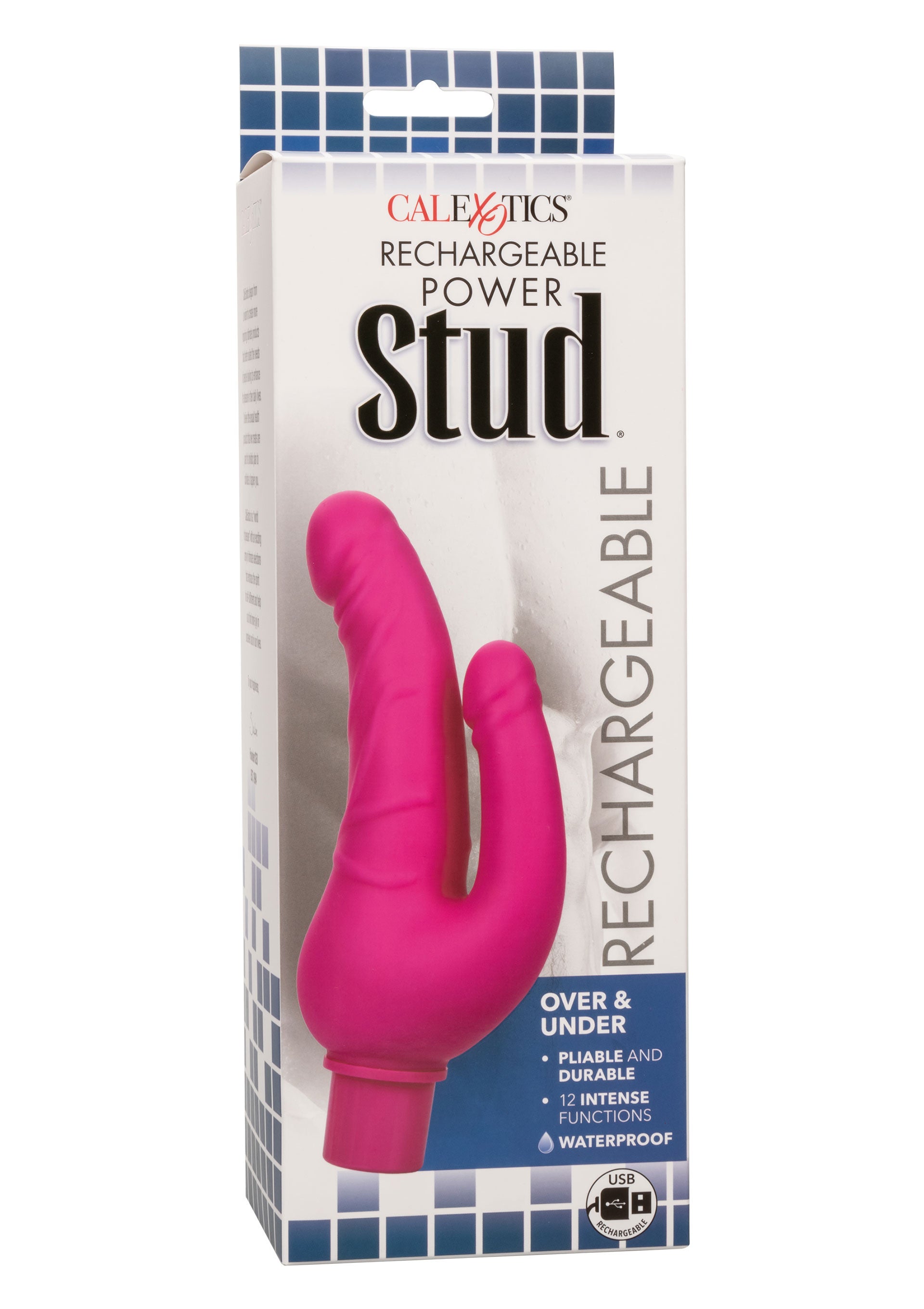 Spingetevi verso un piacere sconvolgente con il vibratore Power Stud Over & Under ricaricabile. Questo potente vibratore a doppia penetrazione è dotato di due fusti flessibili e di 12 funzioni di vibrazione.