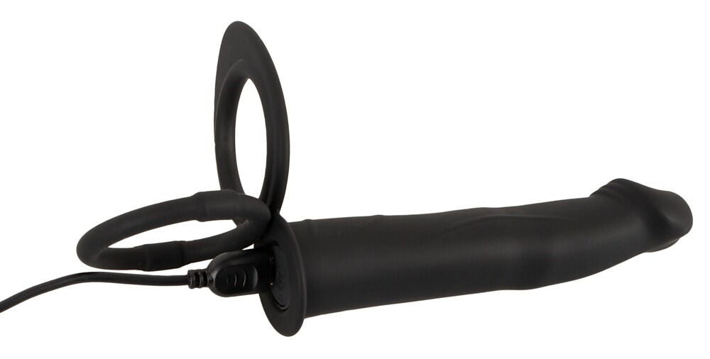 L'RC double fucker di Black Velvets è dotato anche di un (secondo) vibro-pene per una doppia spinta. Il vibratore anale, sottile e leggero, è saldamente collegato all'anello combinato per pene e testicoli. Gli anelli si infilano semplicemente sul pene e sui testicoli e tengono il vibratore saldamente in posizione. Gli anelli supportano anche l'erezione con una vestibilità stretta.