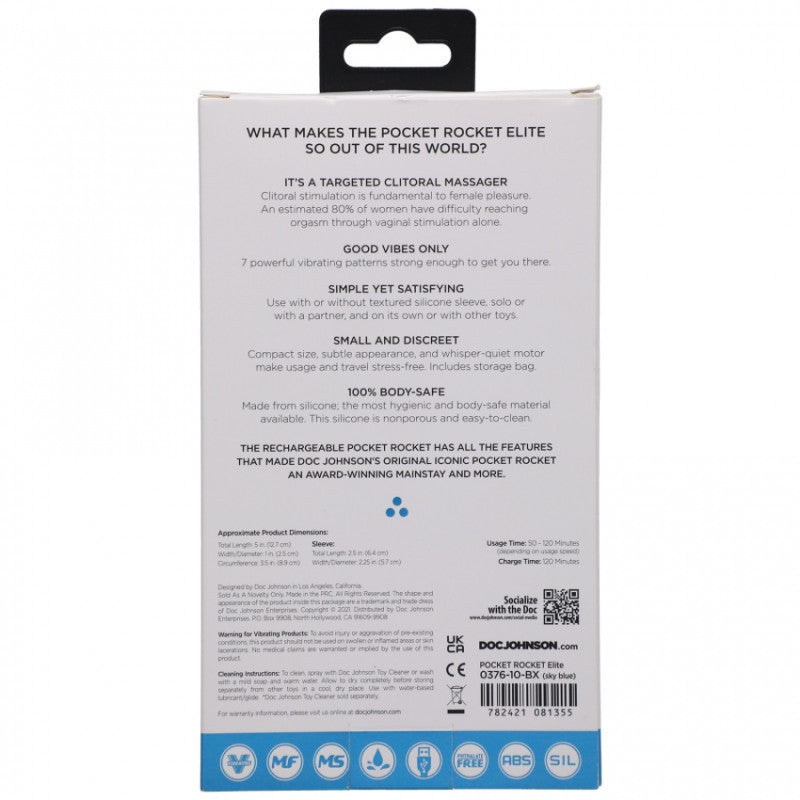 Il Pocket Rocket Elite ricaricabile ha tutte le caratteristiche che hanno reso l'Original Pocket Rocket di Doc Johnson un pilastro pluripremiato e altro ancora. È una mini vibrazione discreta fatta di silicone. Pocket Rocket Elite è ricaricabile e viene fornito con una custodia in silicone testurizzato per sensazioni extra.