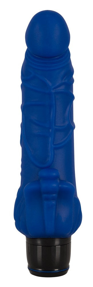 Godetevi il glande e le vene in profondità, mentre le lingue che fanno il solletico alla fiamma accarezzano il vostro clitoride! Vibratore a forma di pene blu con 7 modalità di vibrazione. Lunghezza totale 21,5 cm, Ø da 3,5 a 4,2 cm. Materiale: silicone, ABS. Batterie non incluse: 2 x Mignon/AA.