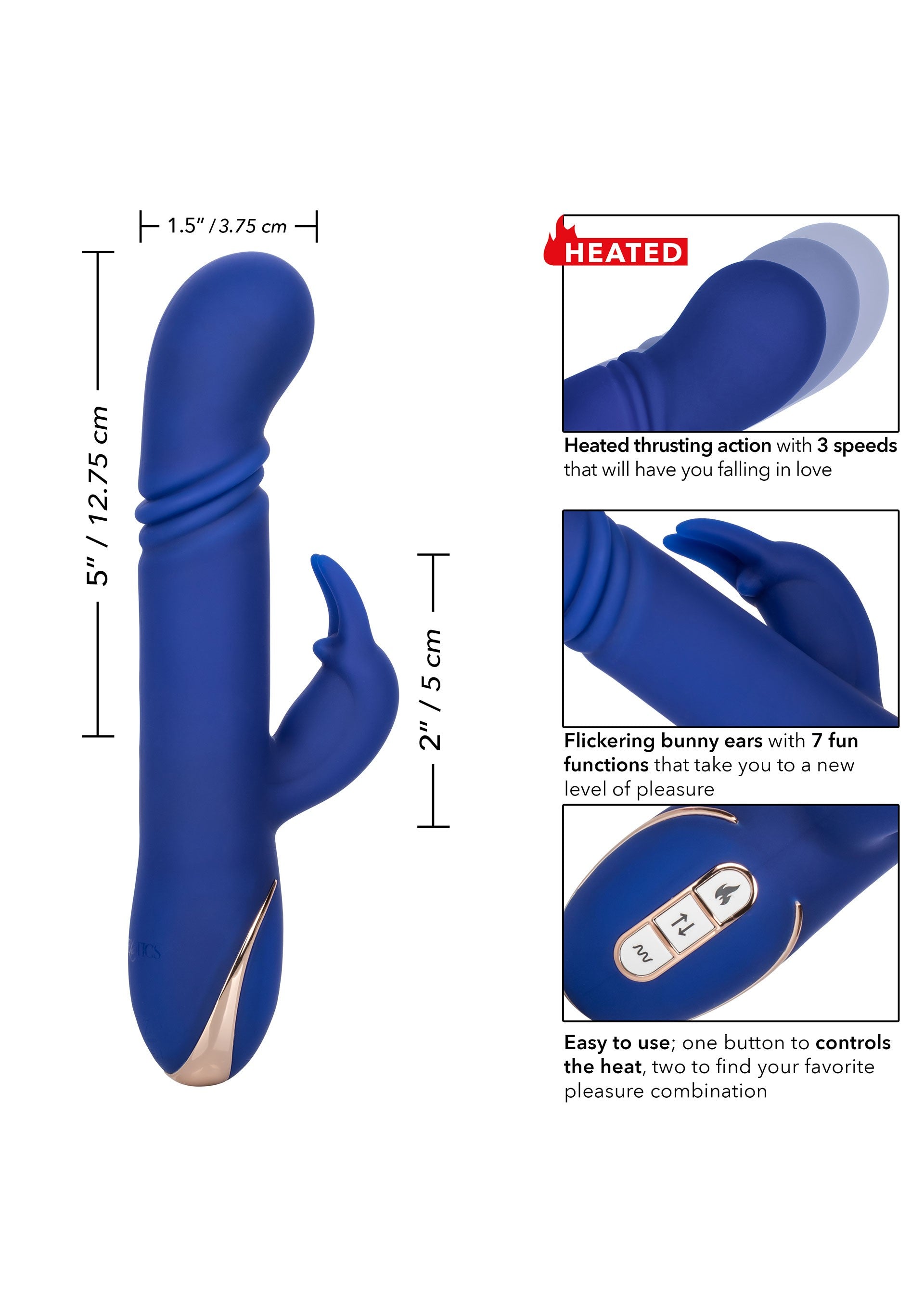 Il vibratore più lussuoso mai realizzato. Il riscaldato Silicone Thrusting G Rabbit è un vibratore in silicone di alta qualità con 7 funzioni di vibrazione, 3 velocità di spinta della punta e un elemento riscaldante unico. L'incantevole coniglio guizza al ritmo di 7 funzioni elettrizzanti, vibrazione per stuzzicare, compiacere e stuzzicare. Concediti una stimolazione profonda e rumorosa con una punta G sensualmente curva e 3 funzioni di livelli di spinta dell'albero.