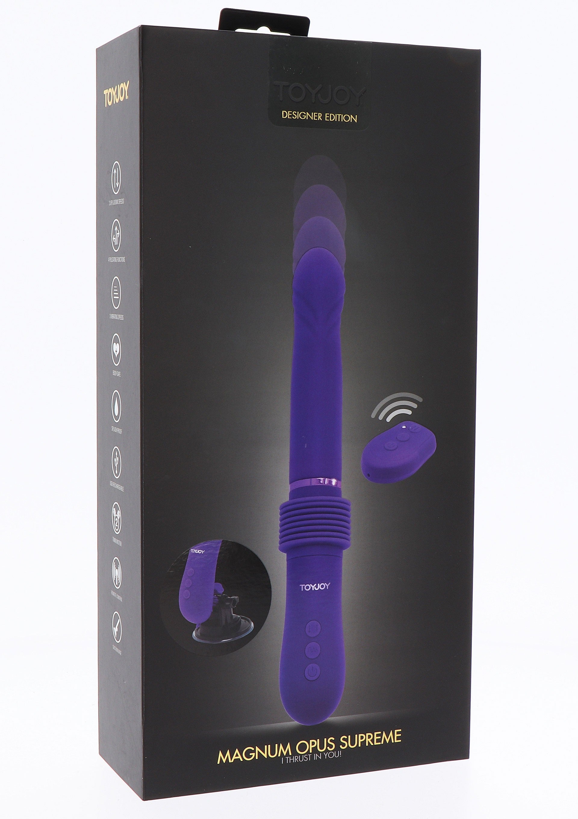 Magnum Opus Supreme è il vibratore a spinta di ultima generazione di TOYJOY Designer Edition. Questo design premium di prima classe presenta un'incredibile lunghezza di estensione o 31 centimetri (12,2 pollici) in totale. Garantisci che colpirà i tuoi punti caldi con il suo silicone liscio, silhouette in stile armonica. Lo stile è disponibile in un colore viola alla moda, uno dei più popolari colori dei giocattoli tradizionali. Con molteplici modalità di vibrazione, pulsazione e azione di spinta, c'è un'impostazione perfetta per ogni preferenza. I controlli intuitivi semplificano il funzionamento e consentono di cambiare rapidamente tra le impostazioni o le intensità durante il gioco. Un altro vantaggio è che Magnum Opus Supreme Thruster 2 è disponibile in un lussuoso packaging che può essere utilizzato come elegante scatola di immagazzinaggio tra un utilizzo e l'altro.