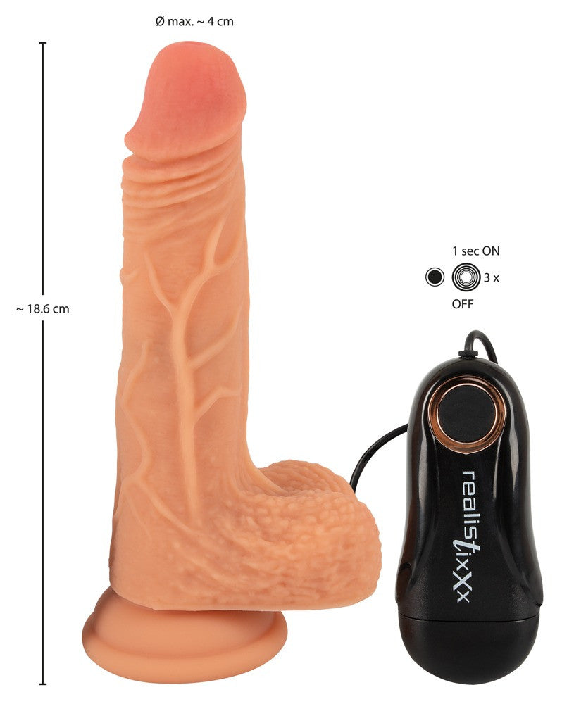 Questo paffuto ragazzo naturale impressiona non solo per il suo design realistico, che impressiona con una venatura pronunciata e un glande così come un paio di testicoli rotondi. La sua mobilità e le 3 diverse modalità di vibrazione, che possono essere facilmente commutate con il telecomando cablato, lo rendono un amante flessibile. È fatto di silicone estremamente morbido, che si sente meravigliosamente liscio e confortevole. Grazie alla sua base di aspirazione, può essere fissato in modo sicuro alle superfici lisce, lasciando le mani libere. Si prega di ordinare le batterie separatamente: 2 x AA.