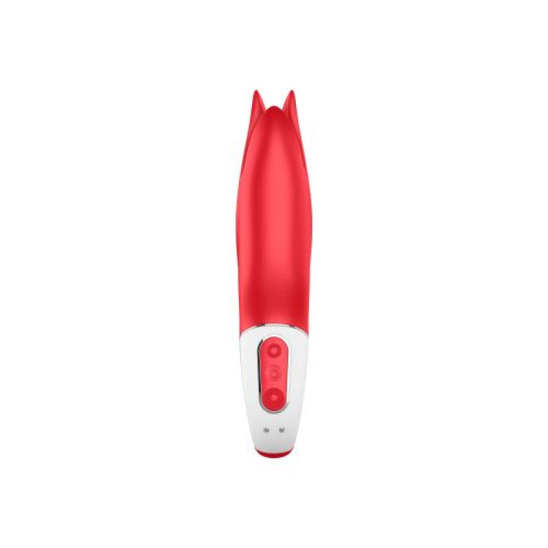 Vibratore di design di colore rosso Satisfyer Flower Power. Privo di ftalati. E’ realizzato in silicone morbido di alta qualità ed ha un motore potente e silenzioso a 12 programmi con 6 intensità e 6 modalità facilmente selezionabili. E' inoltre impermeabile e ricaricabile tramite USB.