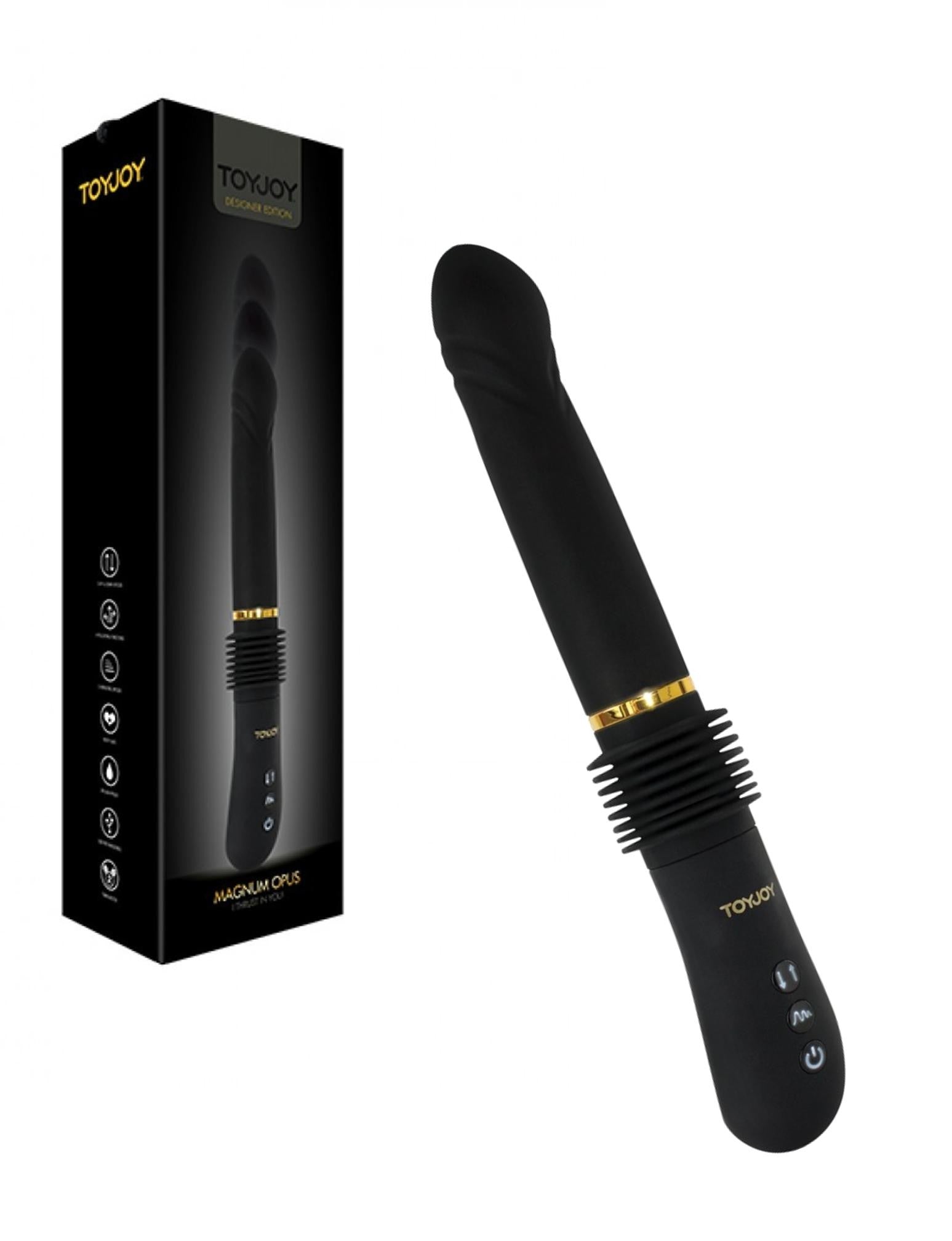 Vibratore vaginale realistico nero movimento su e giù dildo fallo vibrante magnum opus . Il Magnum Opus è un vibratore di alta qualità con un'incredibile capacità di estensione di 8 centimetri . L'elegante design in stile armonica durante l'uso ti regalerà un'estasi incredibile. Dotato di lussuosi dettagli dorati e pulsanti intuitivi per il massimo controllo durante il gioco. Con 4 impostazioni di pulsazione, 3 velocità di vibrazione e 3 modalità di spinta, questo vibratore ti stupirà con le sue sensazionali abilità. Ricaricabile con USB e realizzato in silicone morbido sicuro per il corpo. Resistente all'acqua, ma solo a prova di schizzi. Non è waterproof.